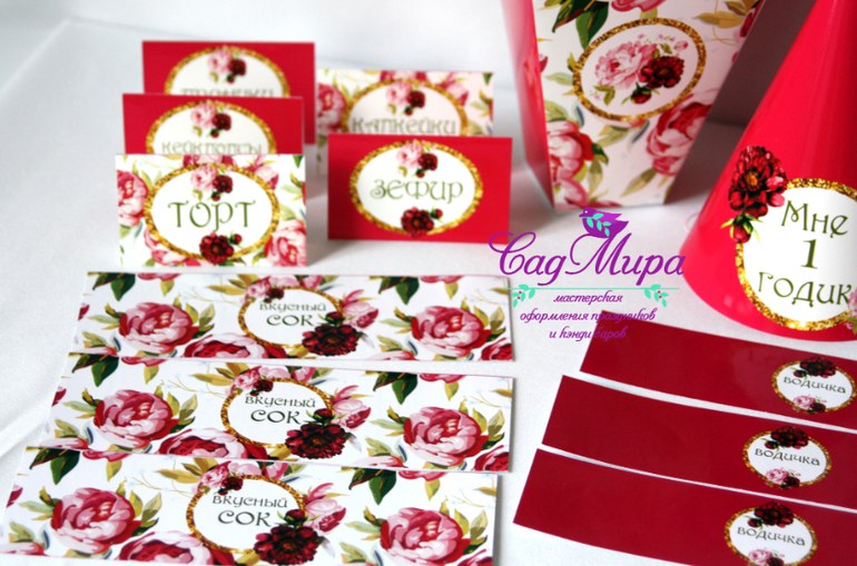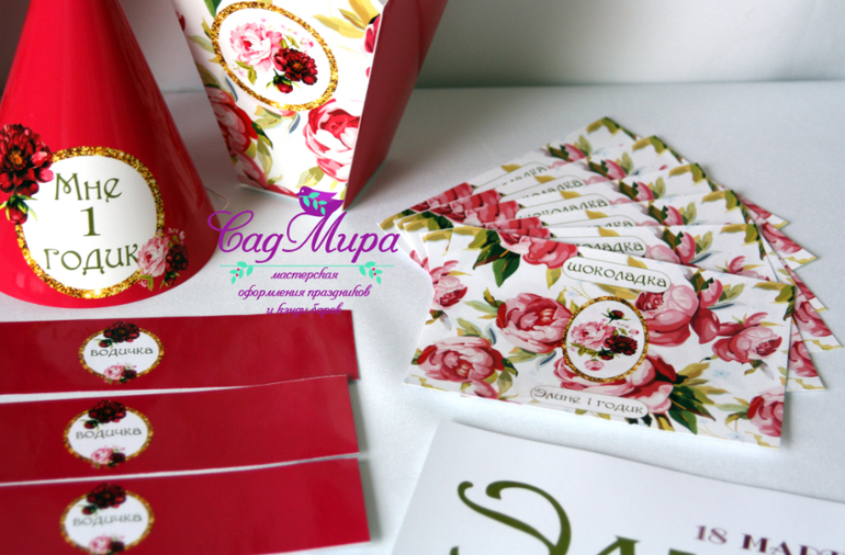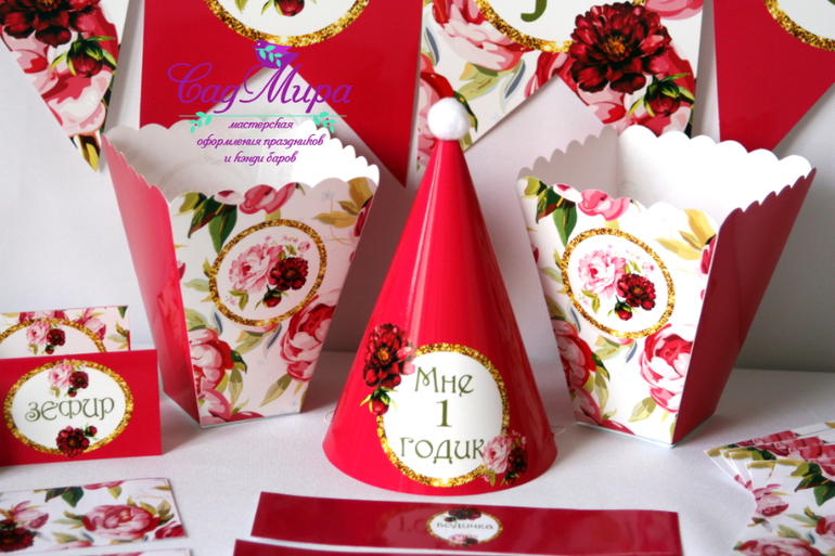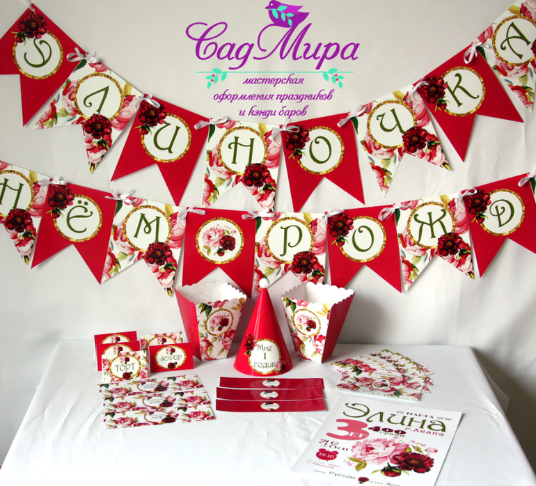 Набор атрибутики для оформления дня рождения Пионы.