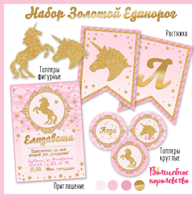 Предлагаю свои услуги!Вы планируете организовать для вашей маленькой девочки праздничную вечеринку? Показываем вам нашу новую тему «Золотой единорог», Особенности набора в накладных деталях из золотого глиттера.