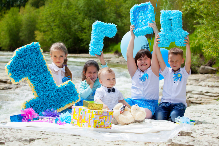 Нам годик! Опыт празднованияПодготовка к празднованию первого дня рождения Кирилла шла месяца два. В итоге получился незабываемый, неповторимый праздник. Объемные цифры и буквы я сделала сама. А также для себя любимой и для наших маленьких гостей-девочек я заказала юбочки. Из той же ткани для всех гостей мы сделали комплимент от именинника эмблемки в виде Кирюшиной ладошки. В общем, все были в восторге. А я получила огромное удовольствие от организованного праздника.