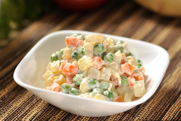 2. ЗАРАНЕЕ Салат оливье с красной рыбой