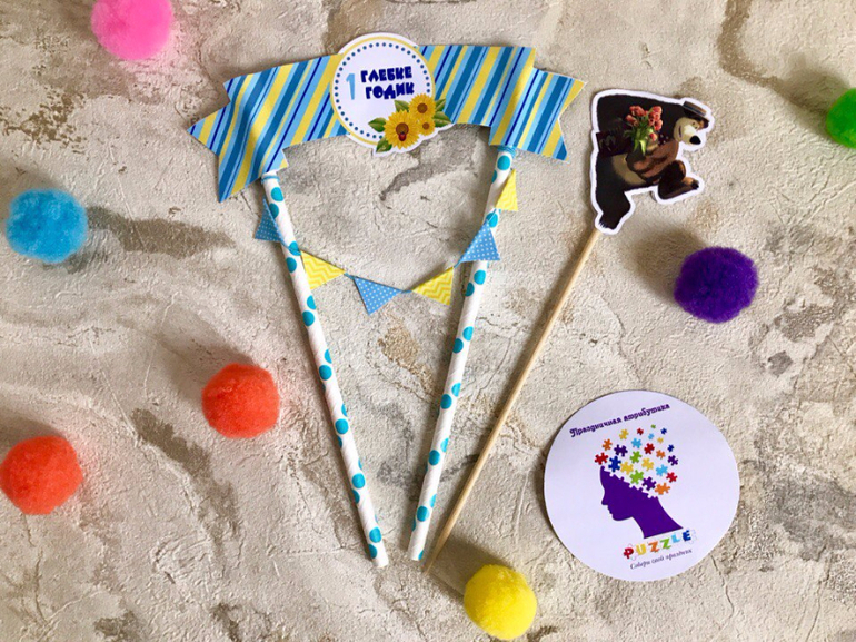Предлагаю свои услуги!Еще один наборчик в стилистике Маша и Медведь. Мама Глеба была категорична в выборе цветового решения при оформлении праздника, обязательным условием был желтый и голубой цвета и "больше МИШИ", два цвета мы разбавили белым и синим, получился веселенький и довольно таки мальчуковый набор, даже в нарядах Маши мы отталкивались от этой цветовой гаммы, что бы не делать лишних ярких пятен.
