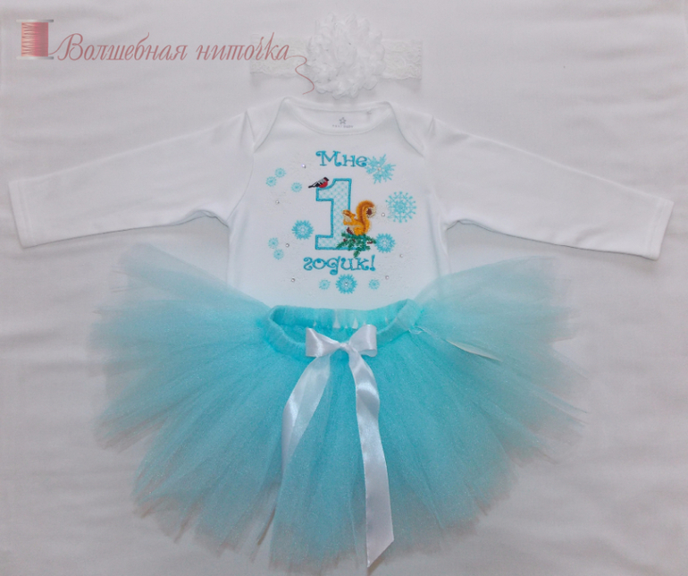 * юбочка ту-ту цвета "акве" с атласным белым бантиком (длина 15-17 см).