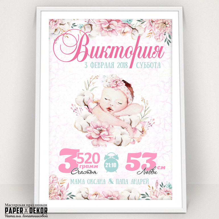 Метрика будет хорошим подарком на выпису, крещение, на любой день рождения.