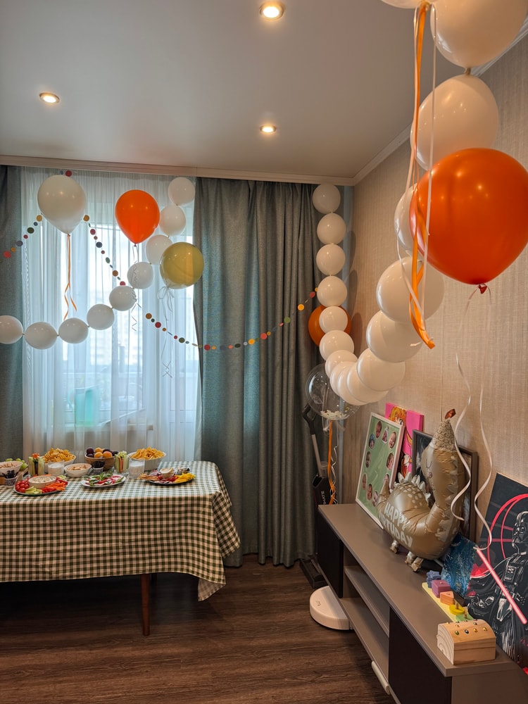 В квартире — шары, торт, платье с оборками и любимая песенка крокодила Гены на повторе. Пахнет цветами и чуть-чуть — усталостью. Но какой-то счастливой, мягкой.