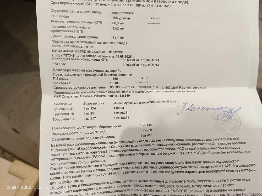 Добрый день. Пришел плохой скрининг по крови,по УЗИ все хорошо. Ходила к генетику,он только мне говорил про платный нипт и какой он хороший. При чем я ему сказал что у меня была ди- Ди. Прочитала про противопоказания для нипт,указано что при внутриутробной гибели 1 го плода нипт не информативен. Т.е. надо делать обязательно амнио? Генетик вообще мимо ушей пропустил мои слова! Я не знаю как поступить. Думаю из ща возраста такие показатели, все же 38 лет. Ребенок желанный,второй. Дочку рожала 5 лет назад, с ней все хорошо, конечно я была моложе. Девочки,подскажите пожалуйста как что делать, кто был с Диди, какие анализы были? Что делали?