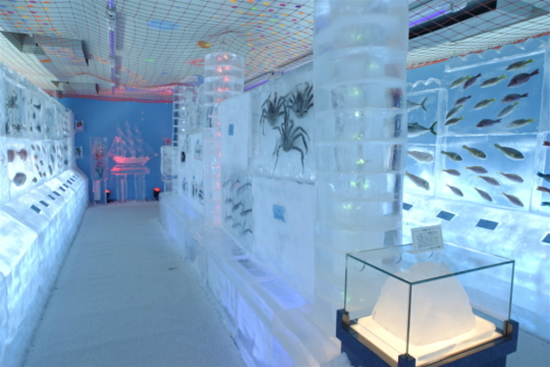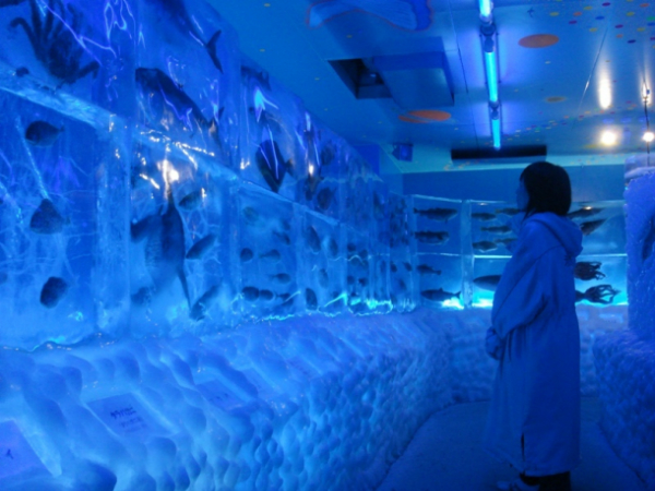 Как средство борьты с летней жарой, Японцы сделали ледяной аквариум.