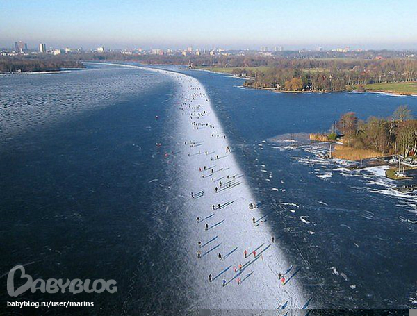 Катание на коньках на озере Paterswoldse Meer, расположенном к югу от города Гронинген, Нидерланды