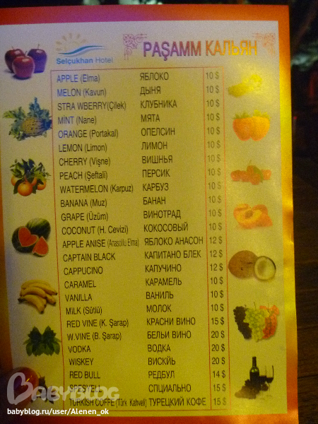 Ой, а еще когда мы кальян заказывали, веселились, читая названия на русском!