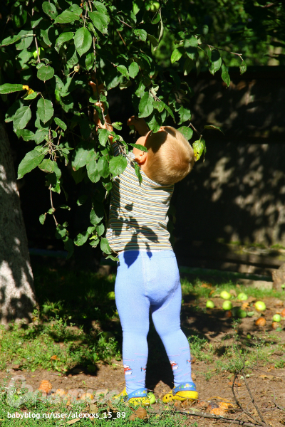 у них же в саду, сынуля сорвал все яблоки до которых мог дотянутся)))