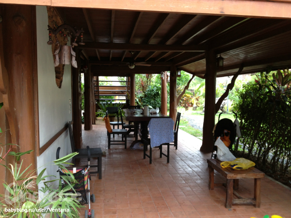 Переехали сюда вчера вечером, устроились побыстренькому и завалились спать. Утром нас отвезли на пляж Банг Тао, до него примерно 10 минут на машине, водитель и в ту и в другую сторону опаздывал на час (для них это норма похоже), так что придется брать машину в аренду. Сейчас дети спят, а я пофоткала немного наше новое жилище