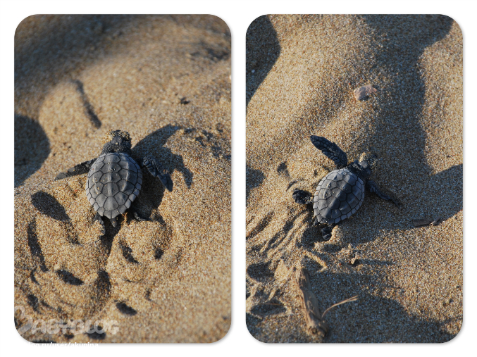 Но это уже ближе к концу отпуска. А в один из первых дней мы обнаружили черепашку, лежащую на панцире возле лежаков, - не удалось ей ночью добраться до воды. Перевернули и сопровождали ее в этом первом для нее испытании. Часто после гордого рассказа о спасении водоплавающих, нас спрашивали, а не утопили ли мы бедное животное? Отвечу всем: "Нееет, она сама бежала к соленой воде, мы ее не подгоняли". А вообще поутру на пляже много черепашьих следов, но все черепашки успевали скрыться до нашего появления.