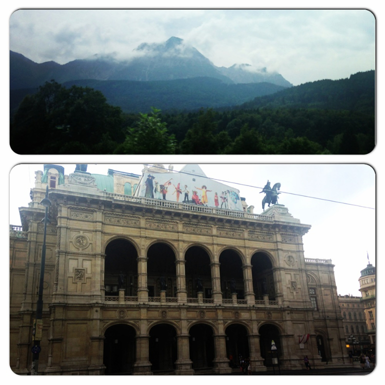 И вот не знаю,что именно повлияло,но я в европе была уже далеко не первый раз и объездила много городов и стран,но вот знаете бывает чувство,что это твоя страна или город,тебе комфортно тут и хочется вернуться ещё раз...Но вот второй раз в Германии и второй раз хотелось скорее оттуда свалить. первый раз была в Берлине и вроде всё интересно,хорошо,но прям часы считала до автобуса в Париж. Тут вроде Мюнхен,Бавария,совсем другая Германия и всё равно уезжала,нисколько не жалея. Ещё язык этот!Ничего не понятно!Надписи никакие на английский не продублированы,на дорогах не понятно куда ехать,всё на немецком,то есть съезды не пронумерованы или не продублированы латиницей там хотя бы...В общем,не моя эта страна,точно). В понедельник выдвинулись в Вену. Ехать также часа 4-5,но через горы, озера,у подножия Альп-красотища!!!! В дороге уже забронировали отель,приехали,разместились и на городском автобусе прямо от отеля по прямой за 15 минут добрались до самого центра Вены,остановка прям у Венской Оперы. Я второй раз в Вене и первый раз летом. И это как раз таки тот город (для меня второй после Барселоны),в который хочется возвращаться вновь и вновь. какая же там потрясающая атмосфера! Это какой-то особенный город. И дело не только в безумной красоте зданий,достопримечательностей,отличного шоппинга,но именно в какой-то химии в воздухе,атмосфере. В общем,кто ещё не был,рекомендую!