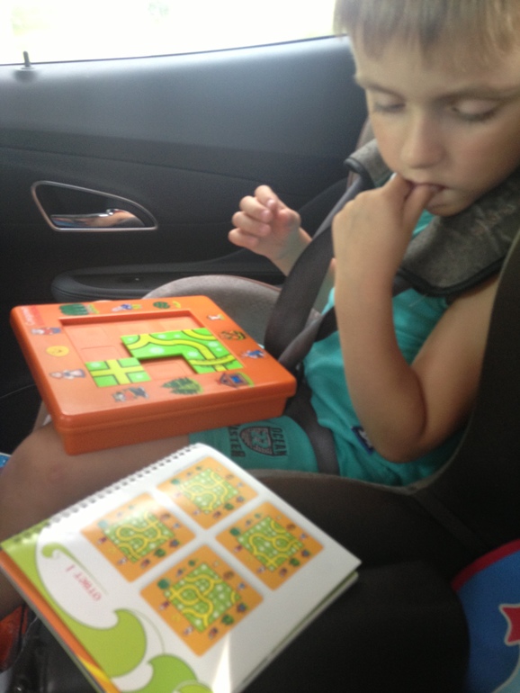 Кстати,очень рекомендую вот такую игру в дорогу. Даже взрослые сидели по часу пытались решить задания. Она элементарна по задумке и сложна по сути.Я смогла только до 5 уровня без подсказок дойти, а там их 48! купили в Дестком мире. Называется Колобок Следопыт или как-то так.