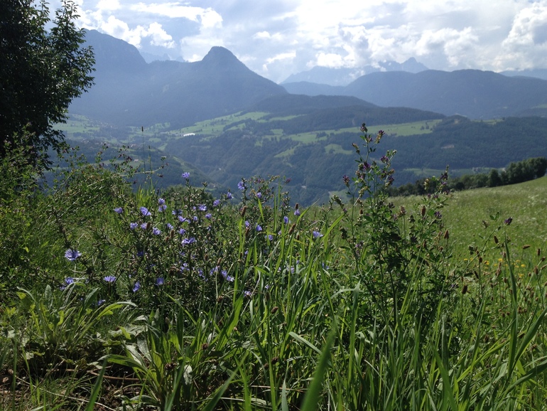 вот с таким видом на Шлерн ( википедия Шлерн )мы завтракали и ужинали...Жаль, камера не снимает одновременно резко и близкие, и далекие объекты..