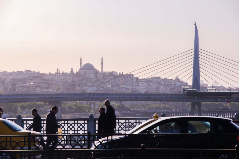 От моста Ататюрка до Галатского 10 минут прогулочным шагом).