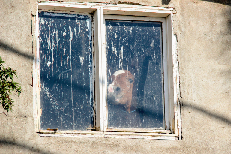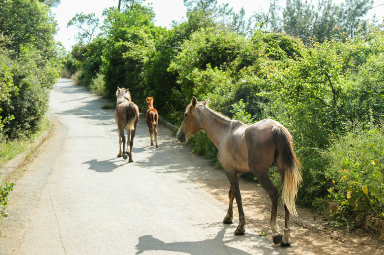 Потусив приличное время на детской площадке, дети оторвались от качелей-каруселей и увидели ... игог-го, лошадки!