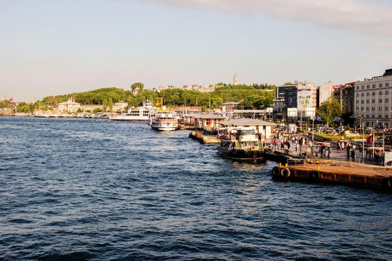 В первую очередь нам предстояло добраться до причала, от которого отходят паромы. В интернете я не нашла толком информации, куда ехать, и мы наугад отправились на пристань рядом с Галатским мостом, где пришвартовано огромное количество экскурсионных кораблей.