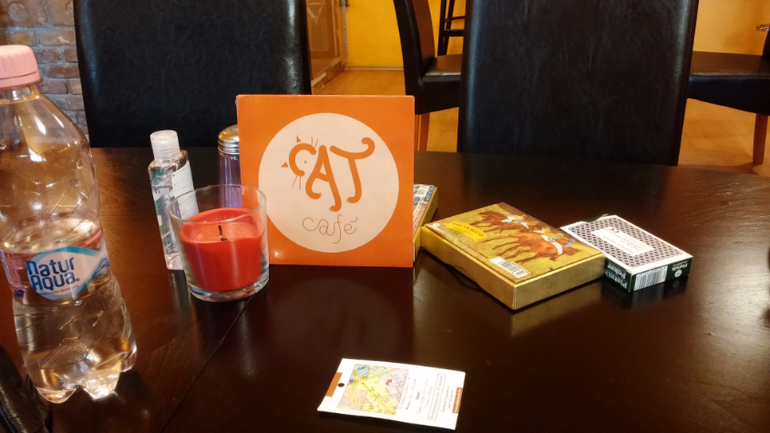 побывали в разрекламированном кафе кошек =) на самом деле не чего интересного,кафе как кафе,пару кошек,которые спят =) да и всё