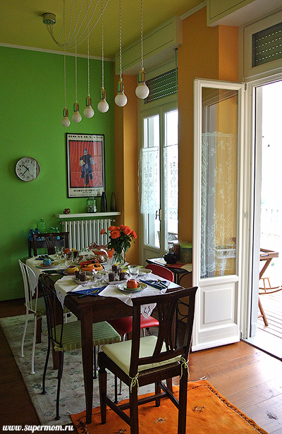 Буйство красок, разноцветные комнаты, полы из оливкового дерева, деревенские рюши и кружева, персидские ковры и кожаная мебель, состаренные комоды и предметы интерьера, созданные вручную. В общем, полная и очень гармоничная эклектика.