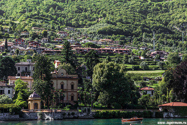 В Швейцарии мы провели всего день и вернулись, чтобы получше познакомиться с самим Комо. А делать это предпочтительнее всего на водном транспорте, потому что горные дороги вдоль Комо непривычно узкие, извилистые и местами довольно опасные, с одной стороны упираются в скалы, а с другой - в озеро. А с озера открываются потрясающие виды на ожерелье вилл и особняков!