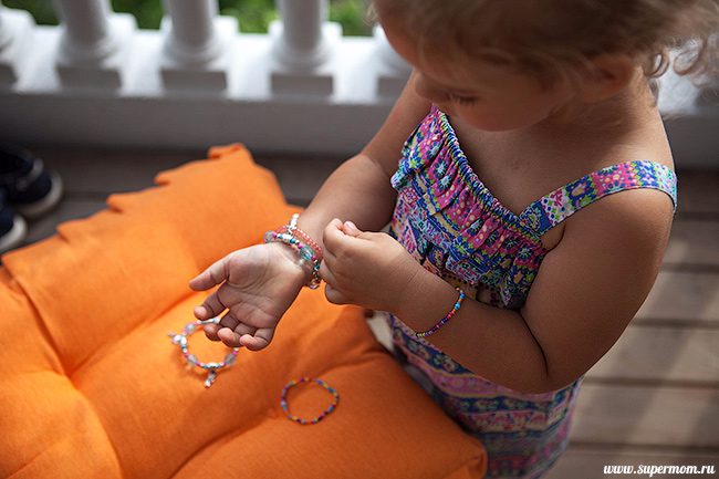 Алиса развлекается мамиными цацками и конструированием слона из вилок, пока родители страдают фигней.