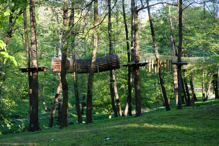 Очень интересный веревочный парк располагается на территории Центрального парка. Основная "трасса" которого проходит на достаточно внушительным обрывом. То и дело слышали визги и крики)))