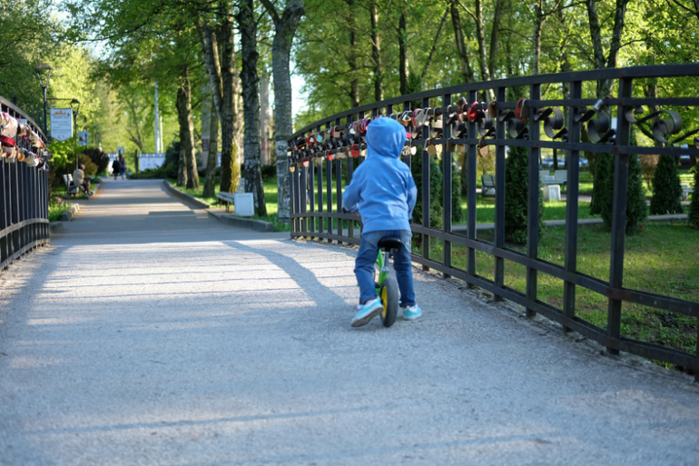 Разместились мы в отеле, покушали недалеко от отеля в кафе и отправились гулять, погода была замечательная, почти летняя. Передвигались мы так: Митя на беговеле, Настя на коляске, либо оба в коляске))