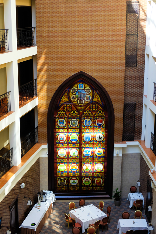 Одной из "фишек" отеля: ресторан "под куполом" - это вид с 4го этажа