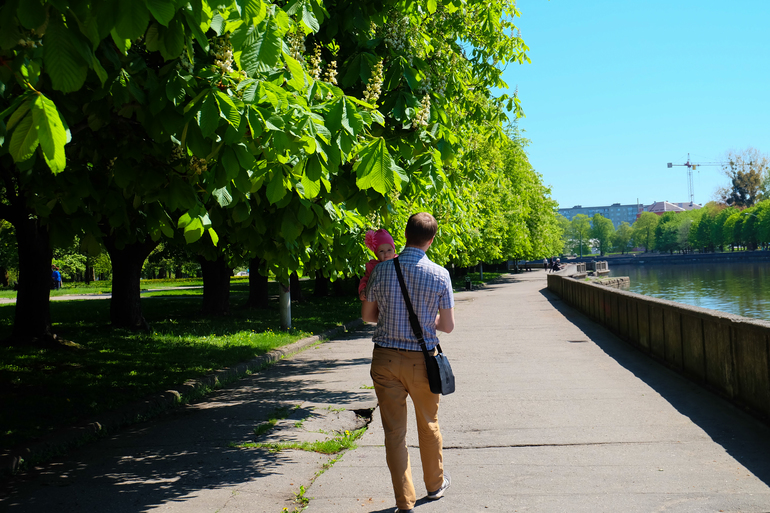 Из-за пробок и недовольства Насти мы вышли чуть раньше и погуляли по набережной Верхнего озера.