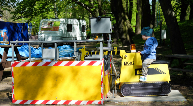 Для детей есть интересные развлечения: Митя учиться управлять экскаватором, не так-то и просто