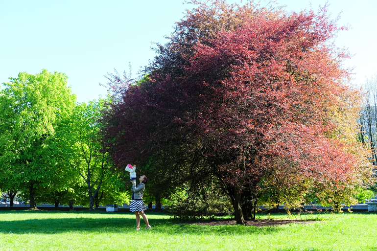 Парк нам так понравился, что обошли его вдоль и поперек. И Настена наша с удовольствием делала первые шажки