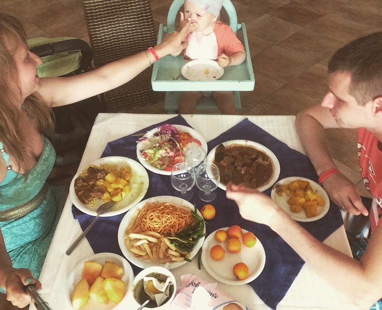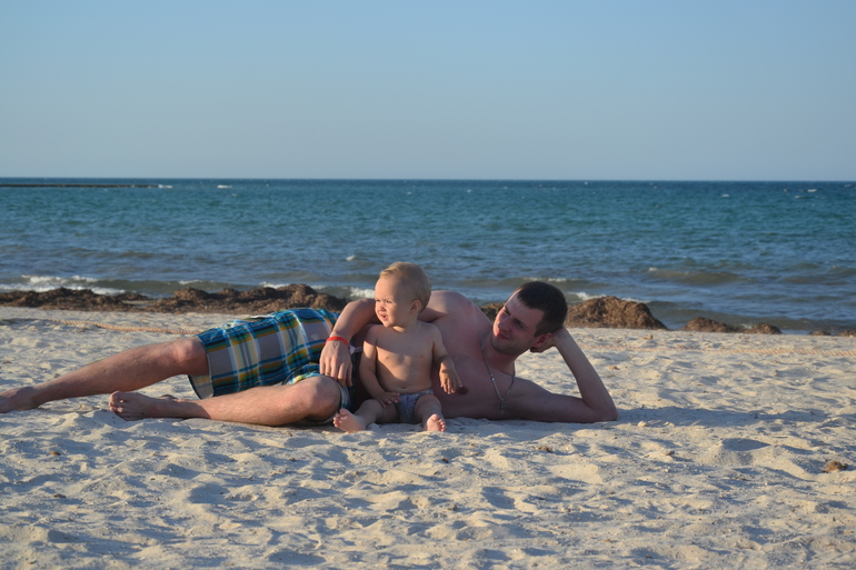 От смены обстановки он был в восторге) Море, белый песок. Все вокруг новое, красивое и неизведанное. Мы тоже были рады отпуску. Никогда не пойму утверждений некоторых, что с маленьким ребенком-это не отдых. Отдых! Еще какой отдых))) Купались, загорали, гуляли, играли. Вечерами на мини-диско, потом веселые шоу. Даже в конкурсе поучаствовать умудрились вдвоем, пока Глебка посапывал в коляске, рядом со сценой)