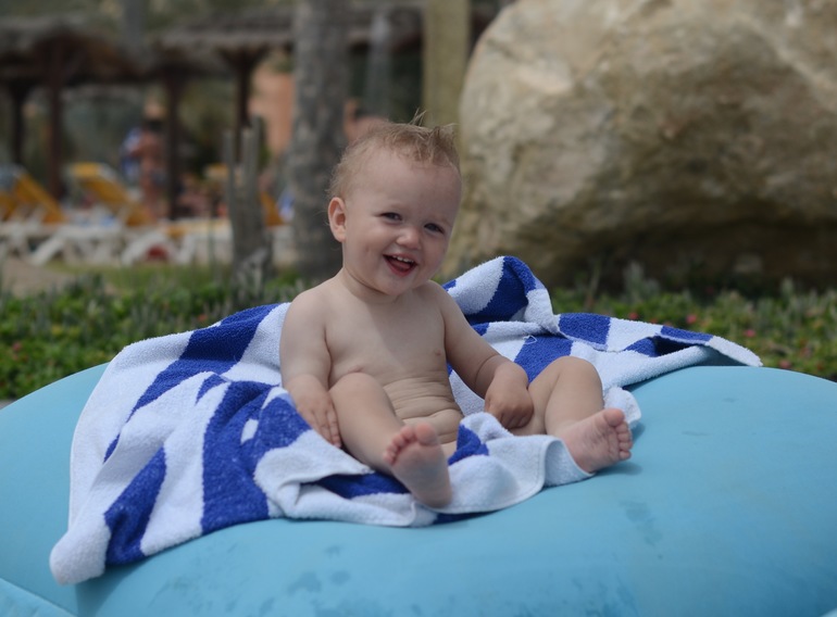 Были мы в Тунисе. Дорога вышла длиннющей. Из дома выехали в 23, вылетели в 6( была 2х часовая задержка), в отеле были в 14. Мы подустали, конечно, а Глебу хорошо))) Ночь спал, в самолете тусил, без слез и капризов) Потом опять поспал в дороге.