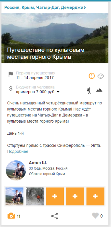 Возможно кому-то это интересно, но я никогда не ищу компанию, мне с семьёй достаточно комфортно)) Наоборот часто приходится от попутчиков отмазываться, чтобы не портить себе отдых. А на месте знакомимся часто, с некоторыми потом даже дружим.