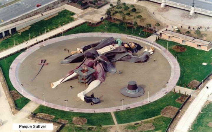 Нашей целью был детский парк Гулливер, который представляет собой гигантскую фигуру лежащего Гулливера, а дети, как лиллипуты, карабкаются по нему, скатывается с многочисленных горок и переходят по тунелям: