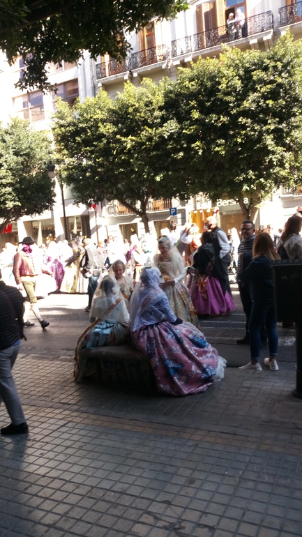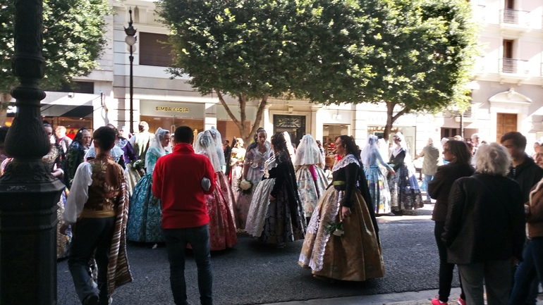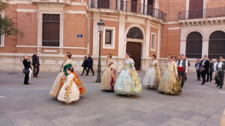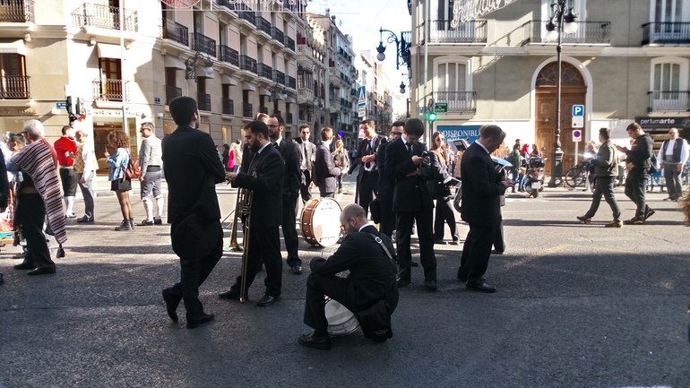 На пути к вокзал мы встретили шествие в валенсийских костюмах под музыку духовного оркестра: