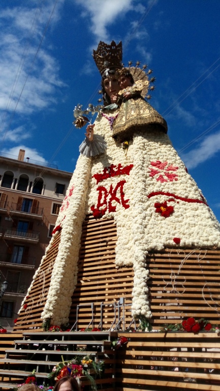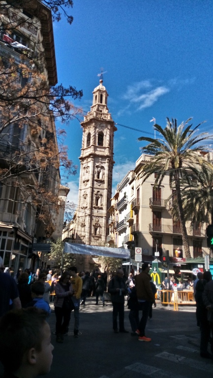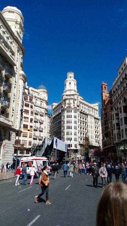 На площади правительства Ayuntamiento каждый день в течение масленичной недели дают праздничныйсалют, поэтому в этом месте мы пробрались через наибольшее скопление людей. И скульптура на этой площади самая высокая в городе: