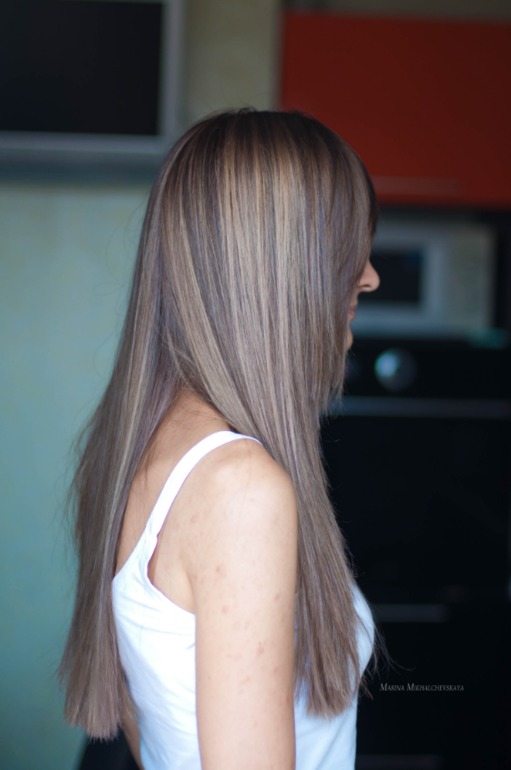 Самое интересное, что волосы после этой методики окрашивания маеняют оттенок и переливы, от освещения и того, как ляжет волос.