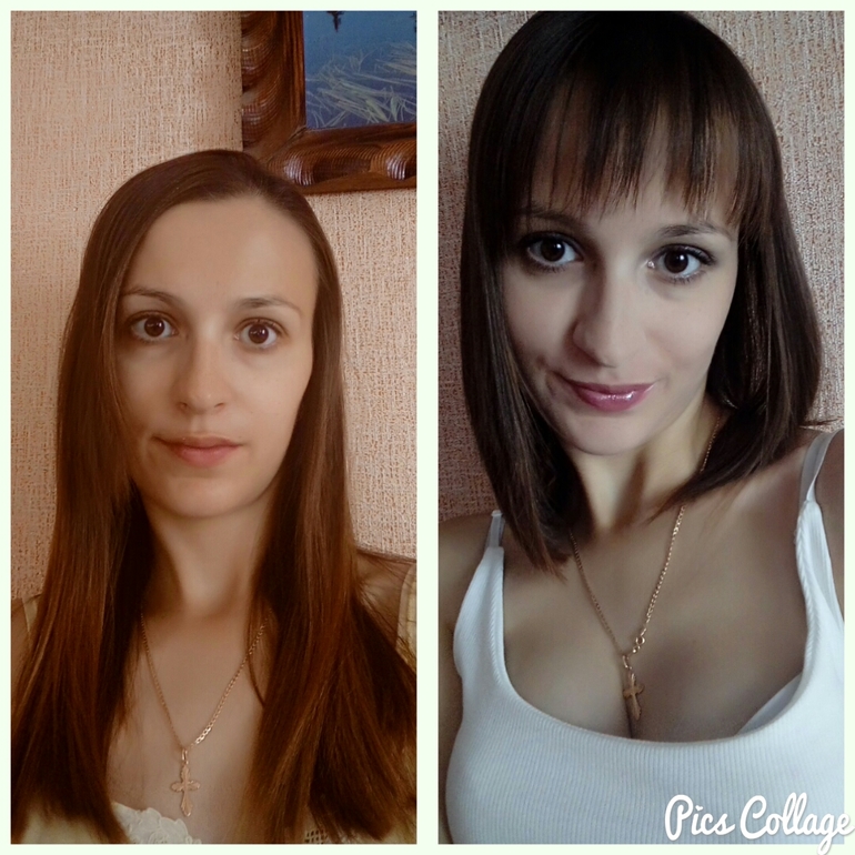 До и послеВсе таки я решилась на этот шаг и подстриглась.Пока что не привычно.Но зато я состригла все свои крашеные концы и теперь остался только свой цвет,так что теперь можно и отращивать,если захочу.Ну в общем вот фото