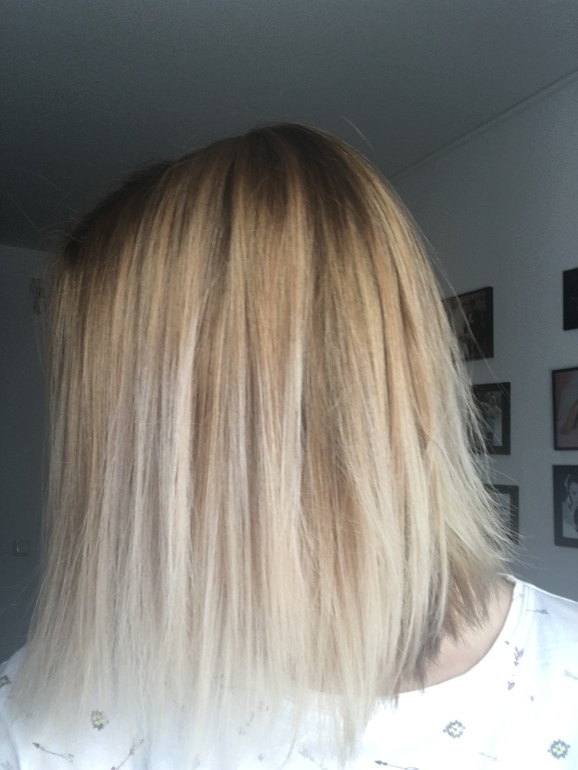 Краситься больше не хотела, т к волосы и так два этапа обесцвечивания прошли и 4! тонирования. Накупила себе разных полуперманентных штук для тонирования. Сначала взяла Игору пепельную, зеленоватый оттенок появился, потом немного цвет подсмылся и мои руки добрались до фиолетового шампуня Schwarzkopf. Фото до использования шампуня и после.
