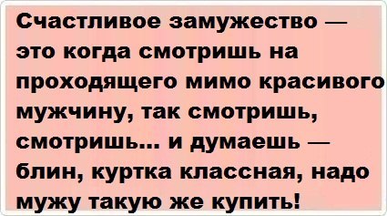 Катерина в Клуб Счастливых Женщин 13 лет Улыбнуло... Счастливые отношения У меня тоже часто такие мысли возникают) Посмотрите еще 20 записей на эту тему Отменить Ответить Highness Супер!!!Краду себе картинку))) 31.01.2013 Ответить Мама Елена Класс) Порадовало)) 18.11.2012 Ответить Алена я вообще перестала смотреть на мужчин))ооо,,,,как затянула семейная жизнь))) 12.11.2012 Ответить Оля Ахахааа....в точку, Кать!!!! 08.11.2012 Ответить Как предотвратить охлаждение в браке? Романтический побег. Романтическое свидание или ужин двух влюбленных. Чаты Беременных Выберите чат: Январята-2026 Февралята-2026 Мартята-2026 Апрелята-2026 Майчата-2026 Июнята-2026 Июлята-2026 Августята-2026