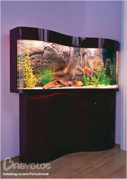 Аквариум. Мечтаю об угловом аквариуме в нашу отдельную квартиру. Чтобы огромный такой был с множеством рыбок и водорослей и подсветка чтобы красивая была. Если честно, эту мечту мне мой супруг навязал, до этого я о рыбках и не думала, а потом...с кем поведешься-того и наберешься! Как представлю, что будет вот такой аквариум у нас стоять, рыбки ведь действуют успокаивающе, будем вечерами глядеть на них плавающих и успокаиваться...