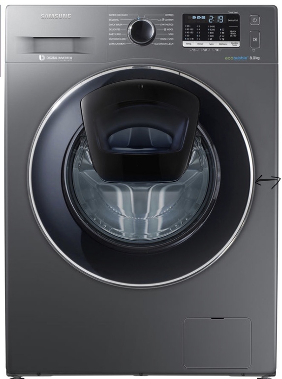Мне нужно знать расстояние от края дверцы до правого края стиральной машины