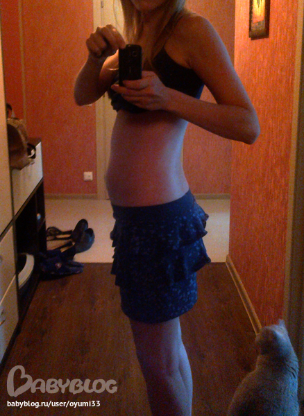 Я такая же паникерша. На прошлой неделе побежала на УЗИ в очередной раз. Увидела, что все ок, теперь спокойна. Пузико у меня такое же до вечера, пока не наемся. Тоже спрашивала врача, как там ребенок то умещается, я же такая худенькая. А потом померила талию, и поняла, что все ушло в бока. Было 58 см, а теперь 67 см, хотя само пузо заметно только вечером. Вечером его и фоткаю :)))