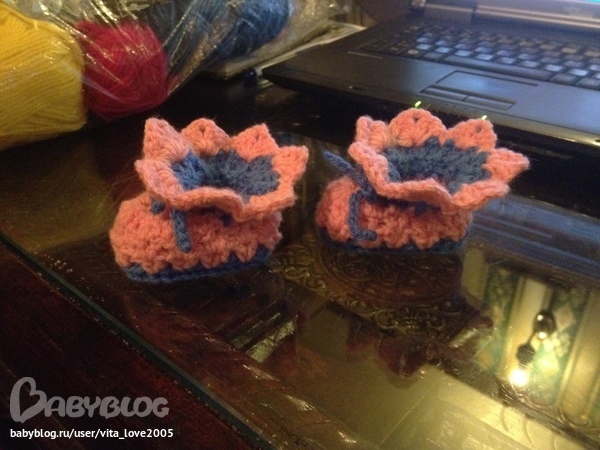 Одежда, игрушки, техникаВчера ночью пока муж спал, я закончила пинетки, можно сказать и как преданное для малыша и для сюрприза одновременно!! )))