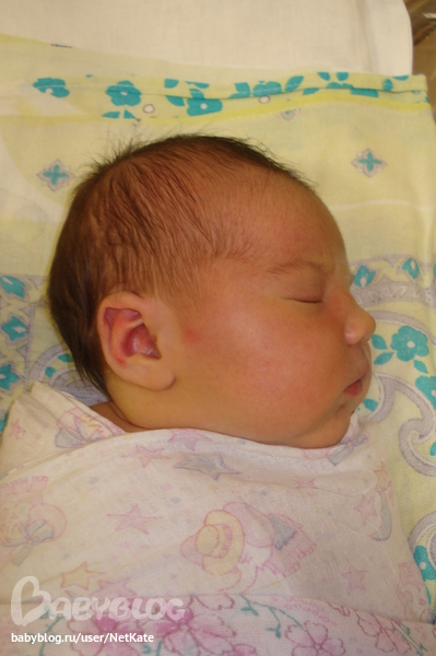 Теперь мы с Евангелиной дома, выписали на 3 день после родов (так положено, если нет проблем). Вот фото в РД + еще под катом. Говорят, профиль мой, а волосики темненькие в папу)