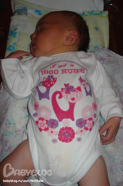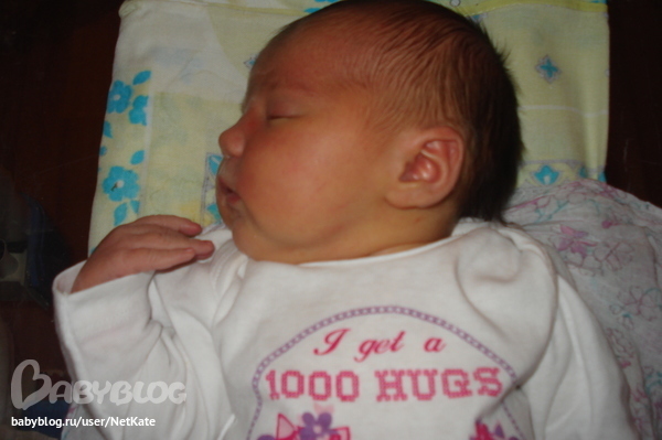 Итого: вес 3,750 кг, рост 53 см, ОГ целых 36 см, 8/9 баллов по шкале Апгар!