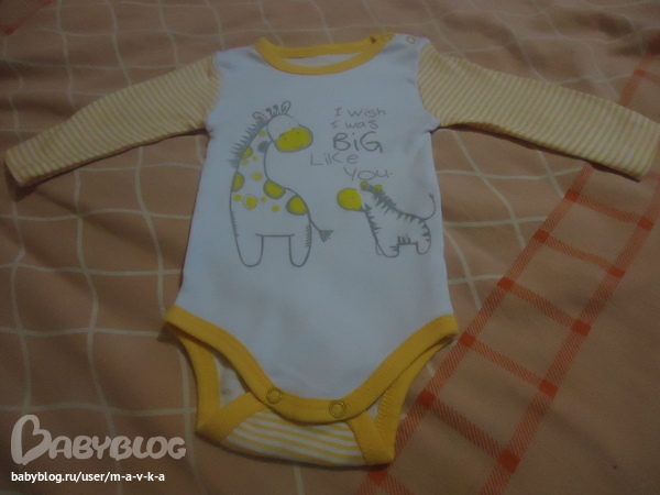 Во вторник с радости, что перешли на новый этап беременности зашла в детский магазин и купила первую лялину одежку. ну не удержалась... Может и рано еще. но настроение было такое хорошее, что ручонки сами потянулись к этой прелести.