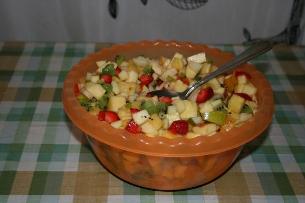 ВАЖНО!!!: ни в коем случае нельзя съедать сразу много такого салата, потому что фрукты содержать много сахара и слопав на радостях много можно получить проблемы с сахаром, да и нагрузка на организм оочень сильная. Так что едим по чуть-чут и часто.