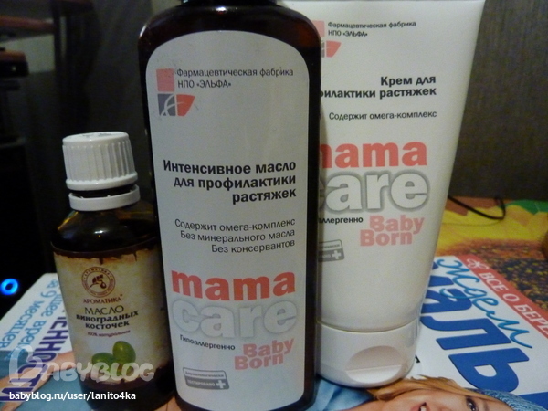 ,что очень приятно)))кремик и маслице от растяжек,незнаю помогут или нет ,но это так приятно наглаживать свой пузик и знать,что там внутри живет маленькое счастье,общаться с ним ![]()